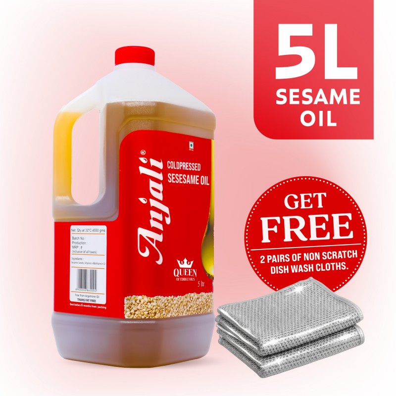 Anjali Sesame oil are pressed from carefully chosen sesame seeds from fields across India and processed adhering to high quality standards ensuring the consistent taste of sesame oil across All seasons and Anjali various packing sizes. Enjoy the goodness of sesame oil with Anjali